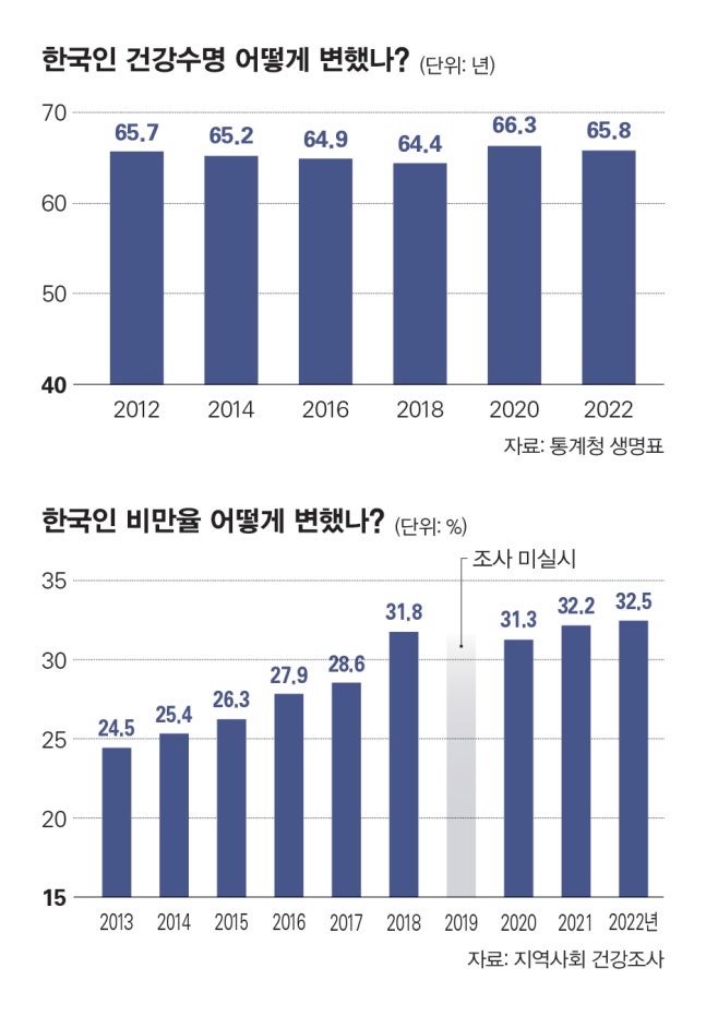 건강수명, 66.3세에서 2년 만에 65.8세로 줄어들어 '건강하지 못한 비만' 증가세가 원인
