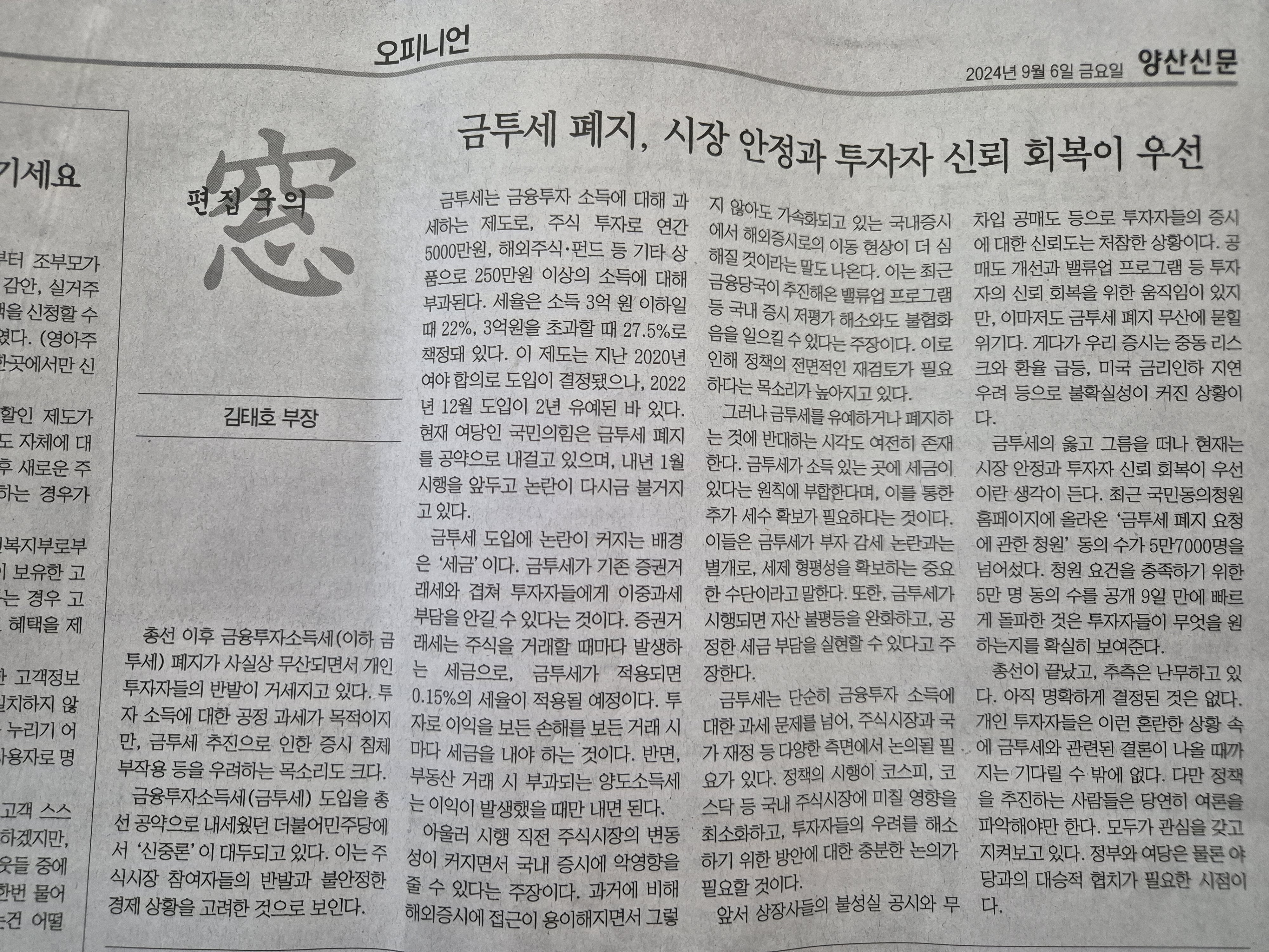 지역 일간지 양산신문 "김태호" 편집 부장님 응원 합니다.