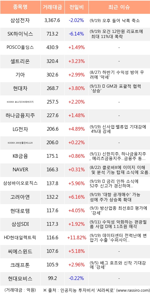 [09월19일]거래소 기관 순매수 상위 종목※ 삼성전자에 대한 속보, 주요공시, 특이사항 더보기 ▶