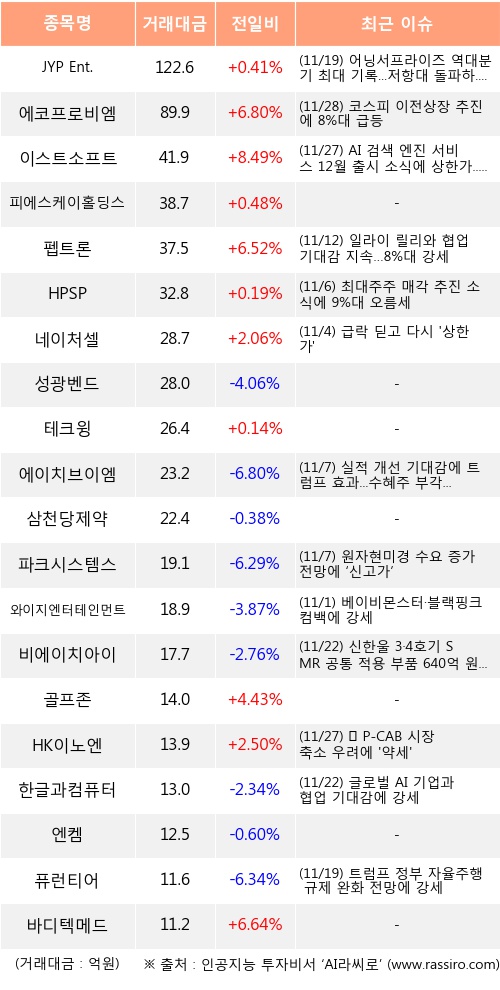 [11월28일]코스닥 외국인 순매수 상위 종목※ HPSP에 대한 속보, 주요공시, 특이사항 더보기 ▶