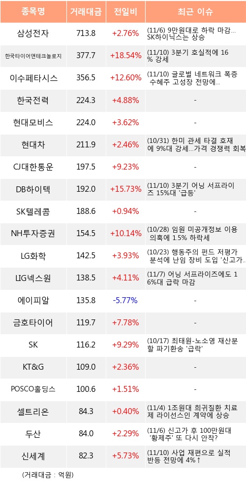 [11월10일]거래소 외국인 순매수 상위 종목※ 셀트리온에 대한 속보, 주요공시, 특이사항 더보기 ▶