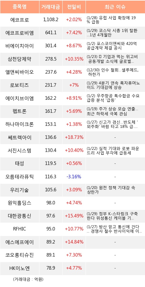 [01월29일]코스닥 외국인 순매수 상위 종목※ 서진시스템에 대한 속보, 주요공시, 특이사항 더보기 ▶